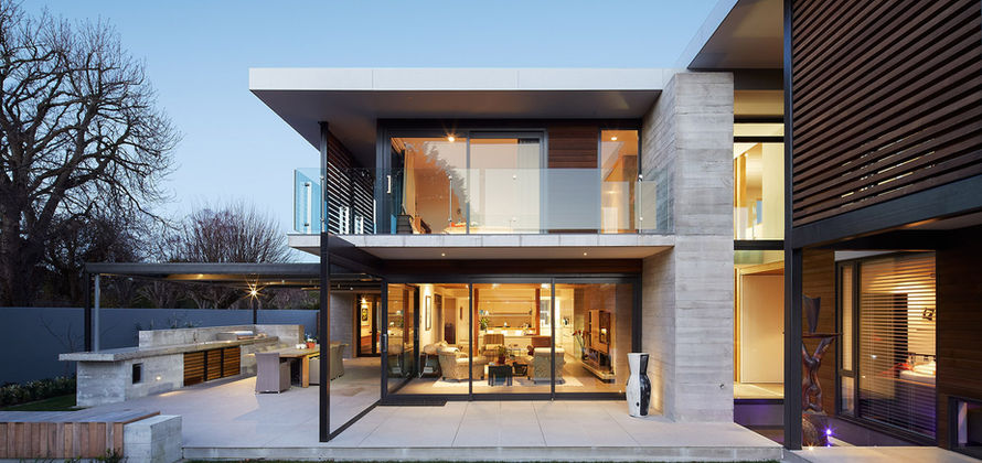 According to traditional Chinese thought, the Wu Xing or five elements that make up the universe are wood, fire, earth, metal and water. The idea is to keep them in harmony, which is exactly what this Architecturaly designed Fendalton House does. Built on a subdivision, the house anchors itself to the tapering site at the end of a long vista of driveway, welcomed by a small water feature.